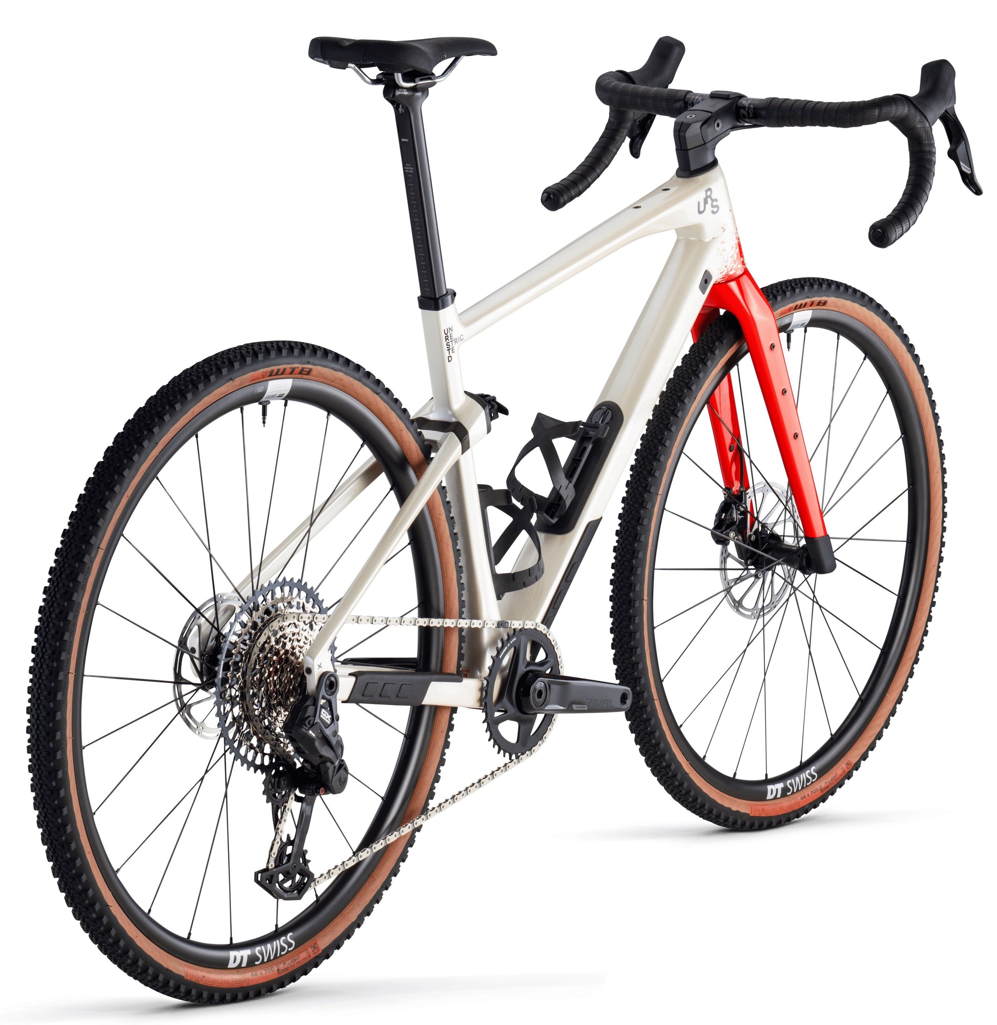 Die neueste Entwicklung des Gravel-Adventure-Bikes, das URS 01 FOUR, ist mit der SRAM Rival AXS-Gruppe ausgestattet, gepaart mit der SRAM GX Eagle-Schaltung und abgerundet durch DT Swiss G 1800 SPLINE-Räder mit 44-mm-WTB-Raddler-Reifen. Außerdem ist es mit MTT-Federungsvorbau und Unterrohraufbewahrung ausgestattet und damit perfekt für jedes Abenteuer geeignet.